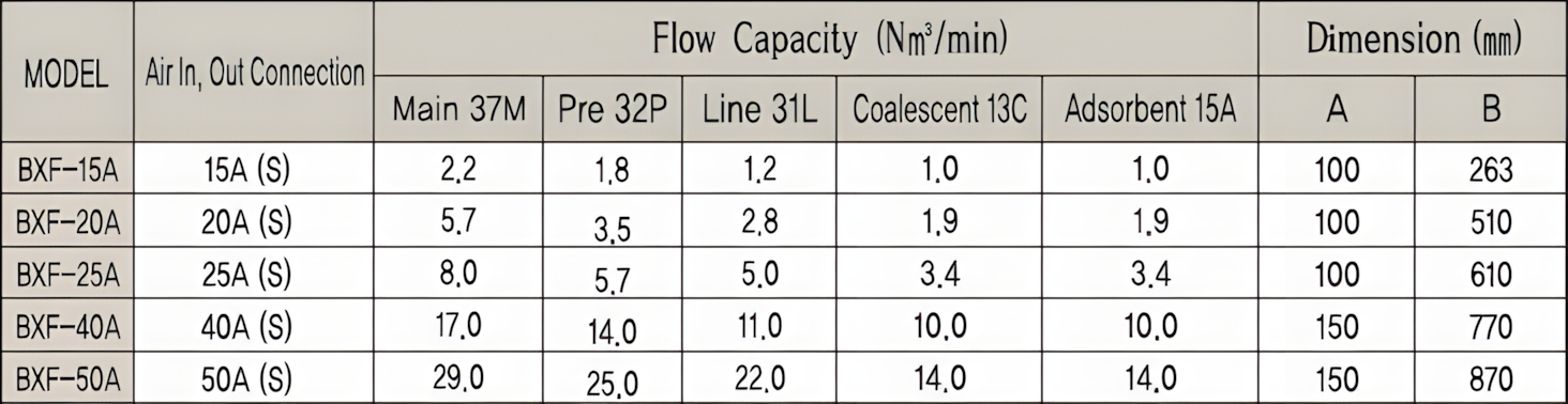 - 전모델 특수 설계된 PE 재질의 엘레멘트는 유,수분 제거에 탁월하다.